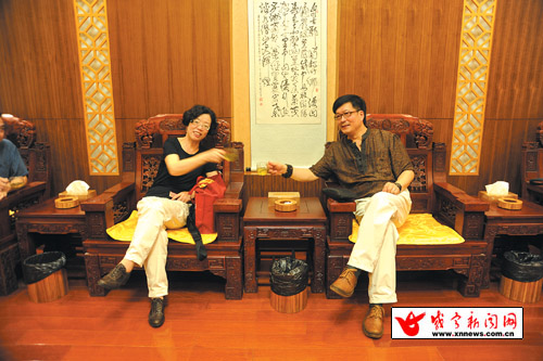 王立東與舒婷在市竹博物館品嘗竹葉茶