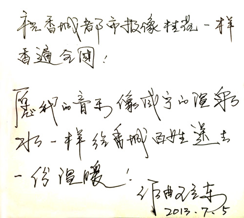 王立東介紹,走進這座園林城市,一種清新感覺迎面撲來,讓人猶如置身天堂般。通過一天的采風之后,這座城市的美激發(fā)了無數(shù)靈感,在一天的時間里基本上便確定了這首咸寧形象音樂的框架,曲風主要定格在民樂與通俗相結合,并加上當今流行的演奏樂器和演奏方法,打造一首真正體現(xiàn)鄂南特色、體現(xiàn)香城泉都神韻、易于傳唱的新歌:音樂起,舒緩輕柔的旋律呈現(xiàn)出桂花飄香、溫泉潺流、竹林舞動的意境之美;隨著節(jié)奏的追進,旋律慢慢轉入大氣和諧的高潮部分,傳遞著除了一份委婉之外,還有一份力量和震撼……